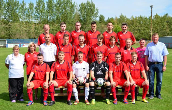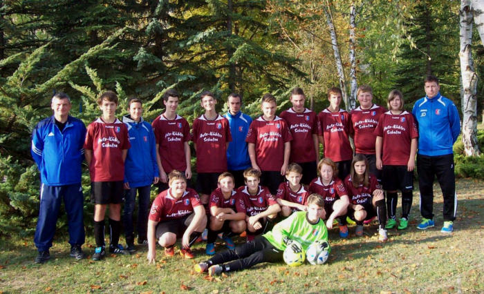 Mittlere Reihe von links : Trainer René Schulze, Tim Knöfler,