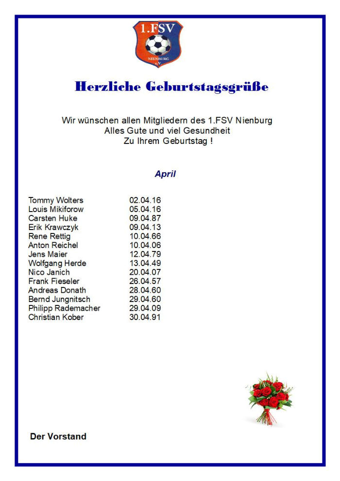 Wir wünschen allen Mitgliedern